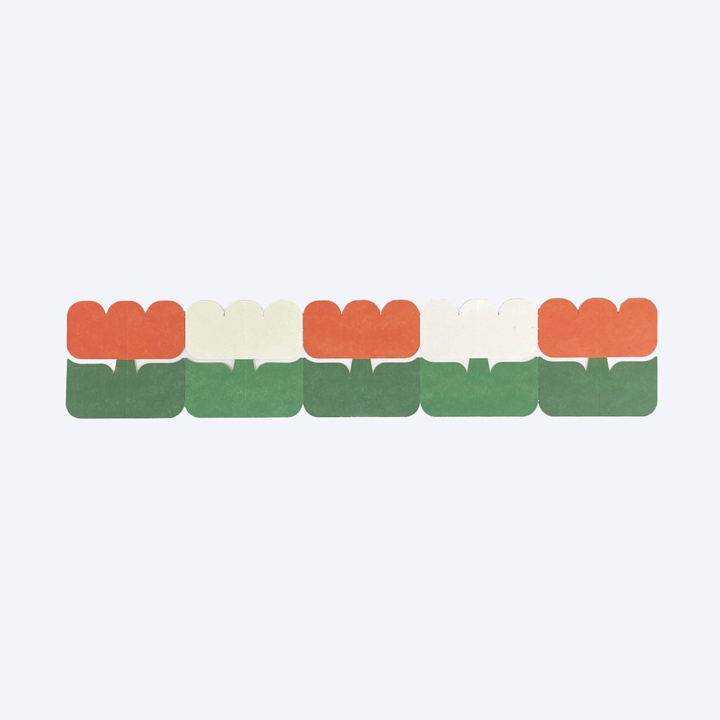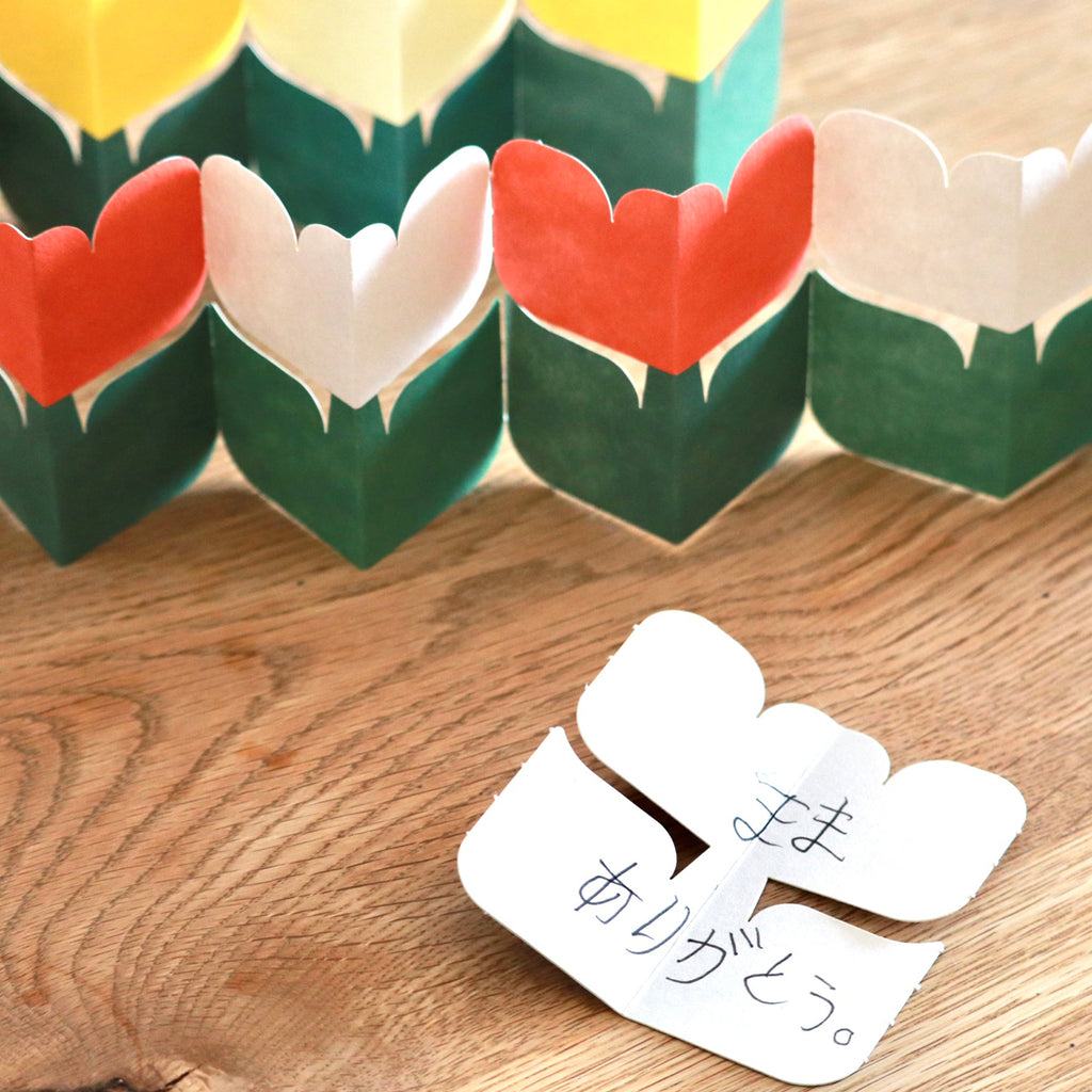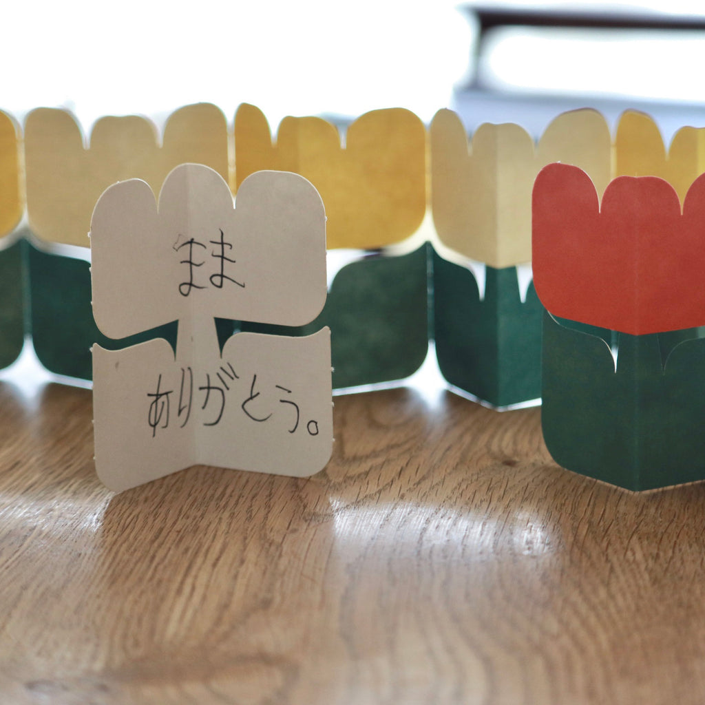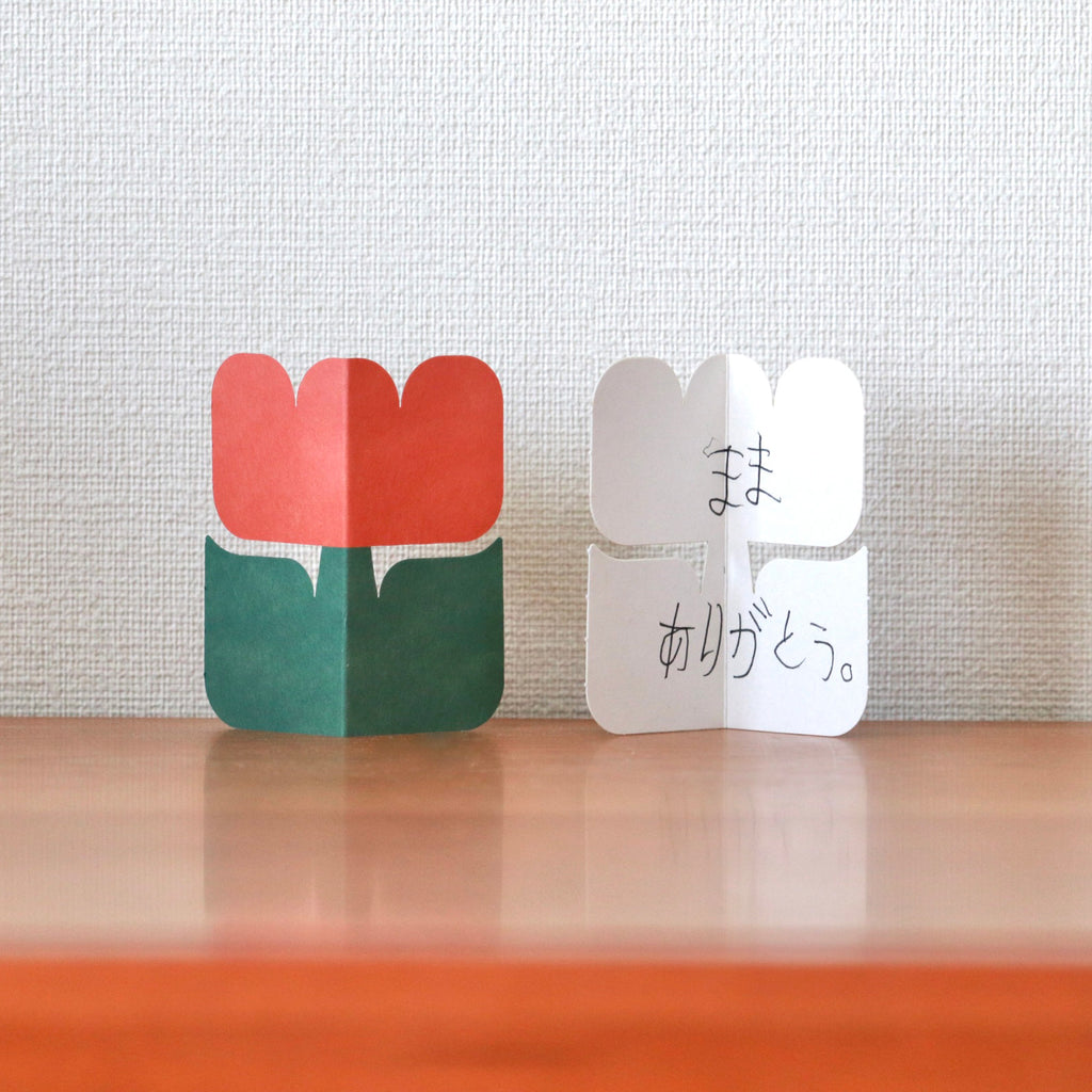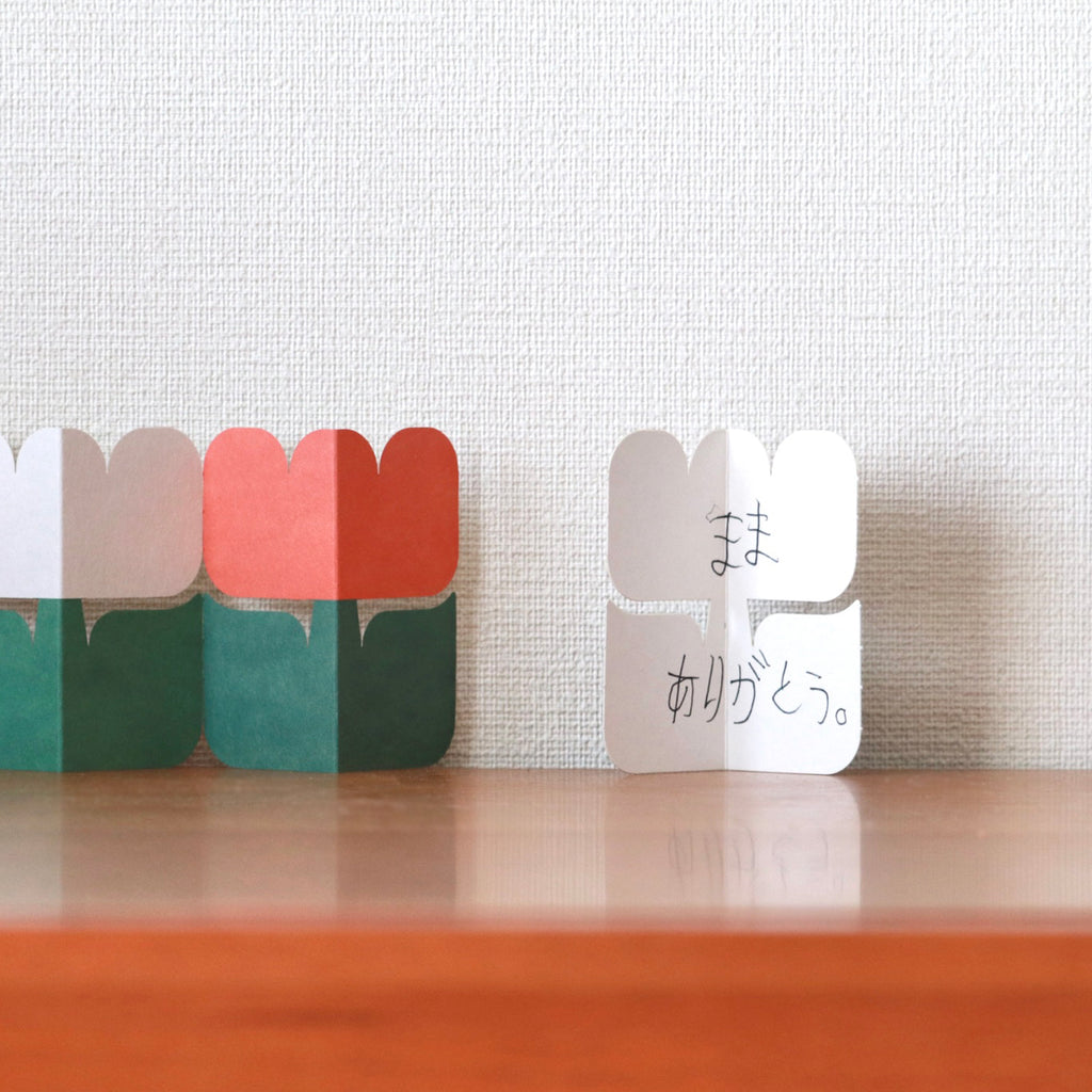 A charming card set featuring an adorable tulip shape, perfect for casual greetings or thoughtful messages. By folding the card, it stands upright — turning your message into a little decoration.