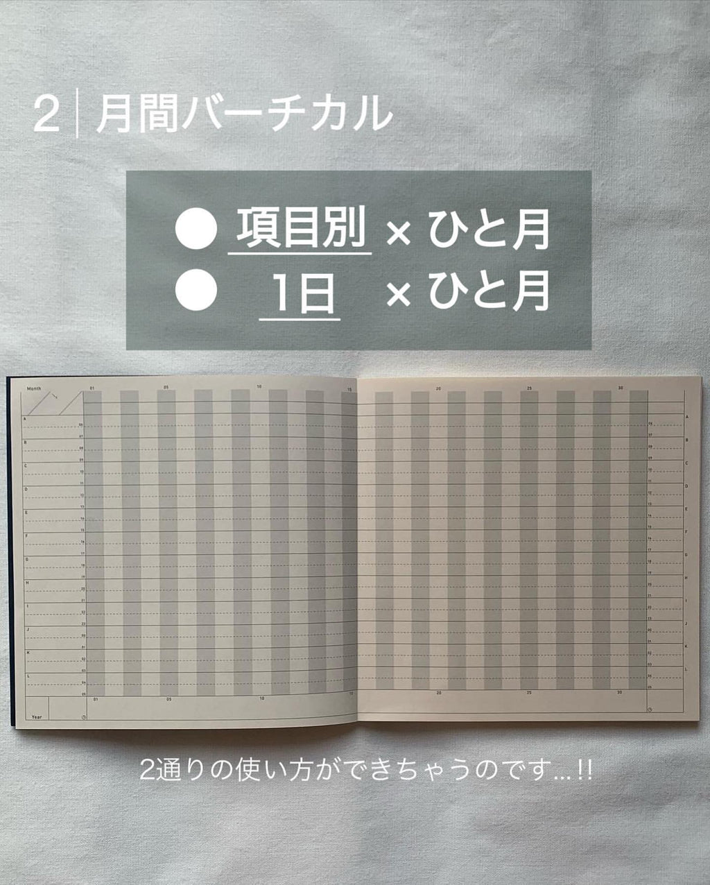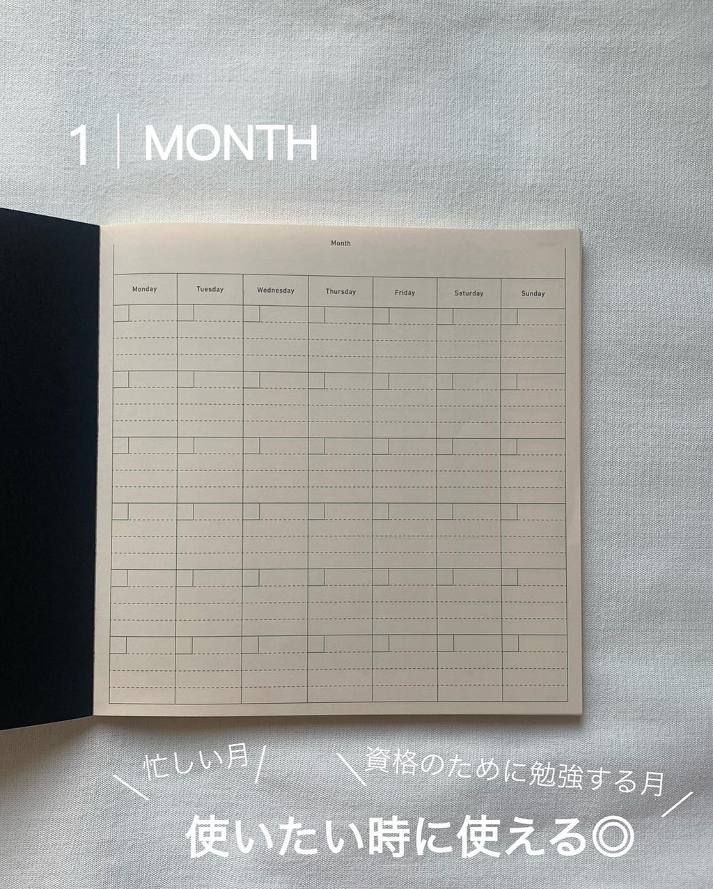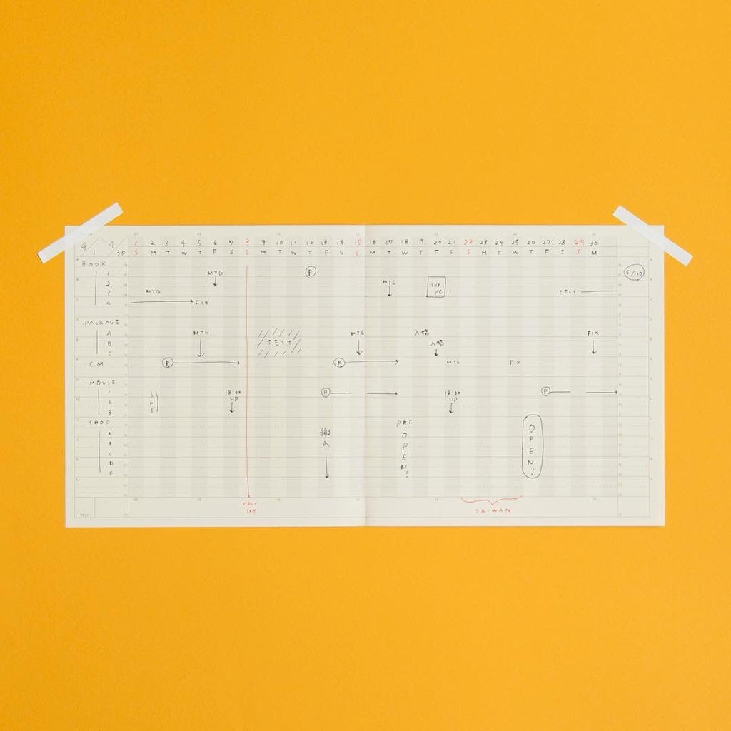 This is a notebook that you can use as you wish, including a calendar where you can write freely and a Gantt chart that can be used vertically and horizontally. This unique design was created through repeated research on how to use the vertical and horizontal axes of a Gantt chart.