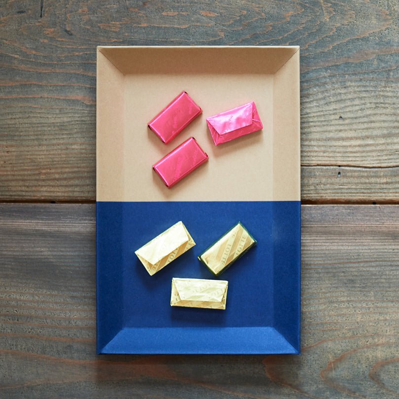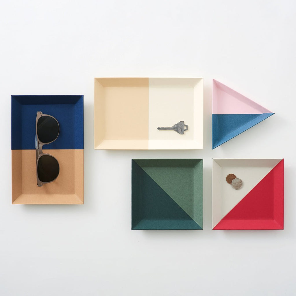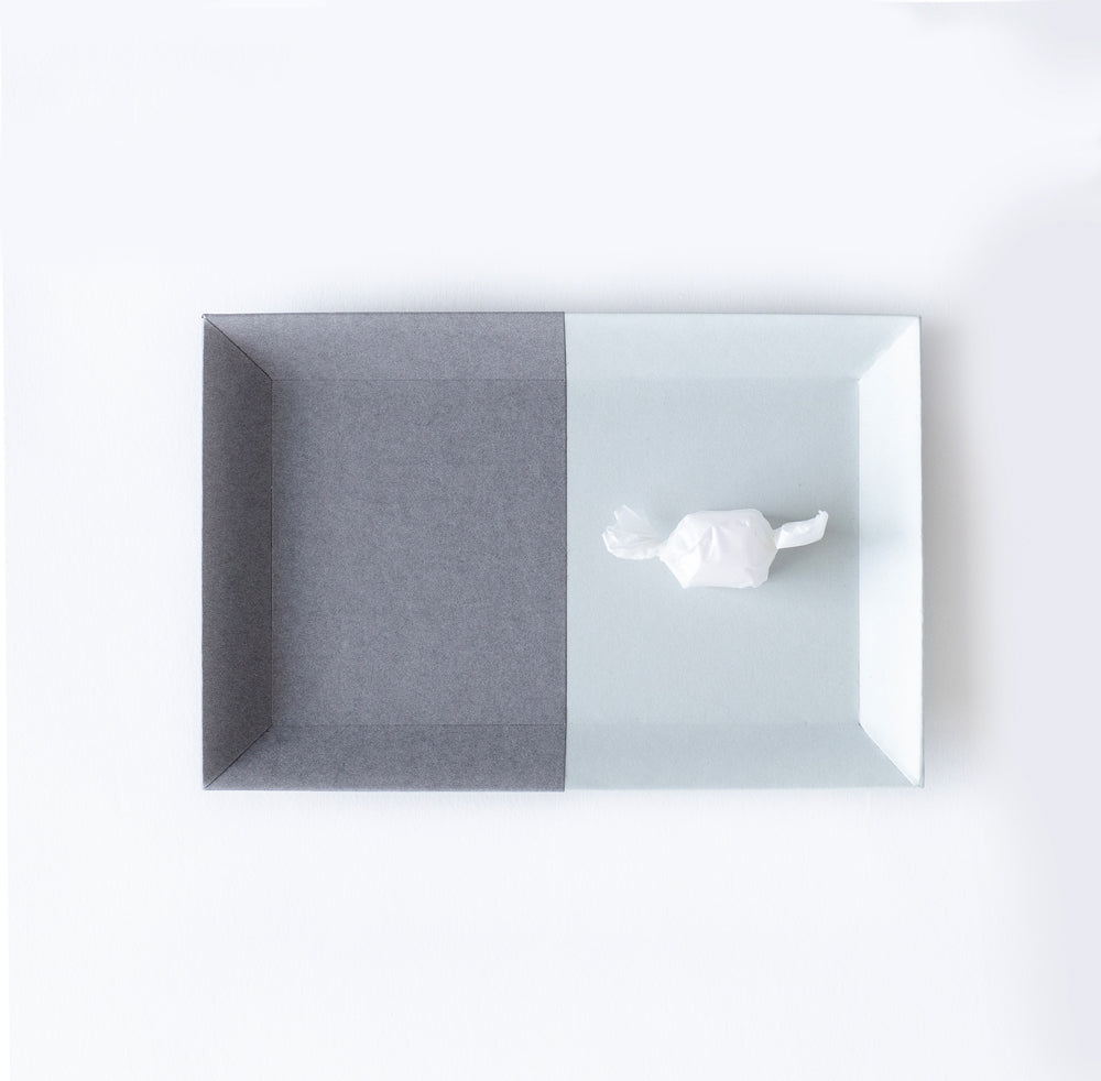 A tray made of two pieces of beautiful colored paper pasted together in a compositional manner.