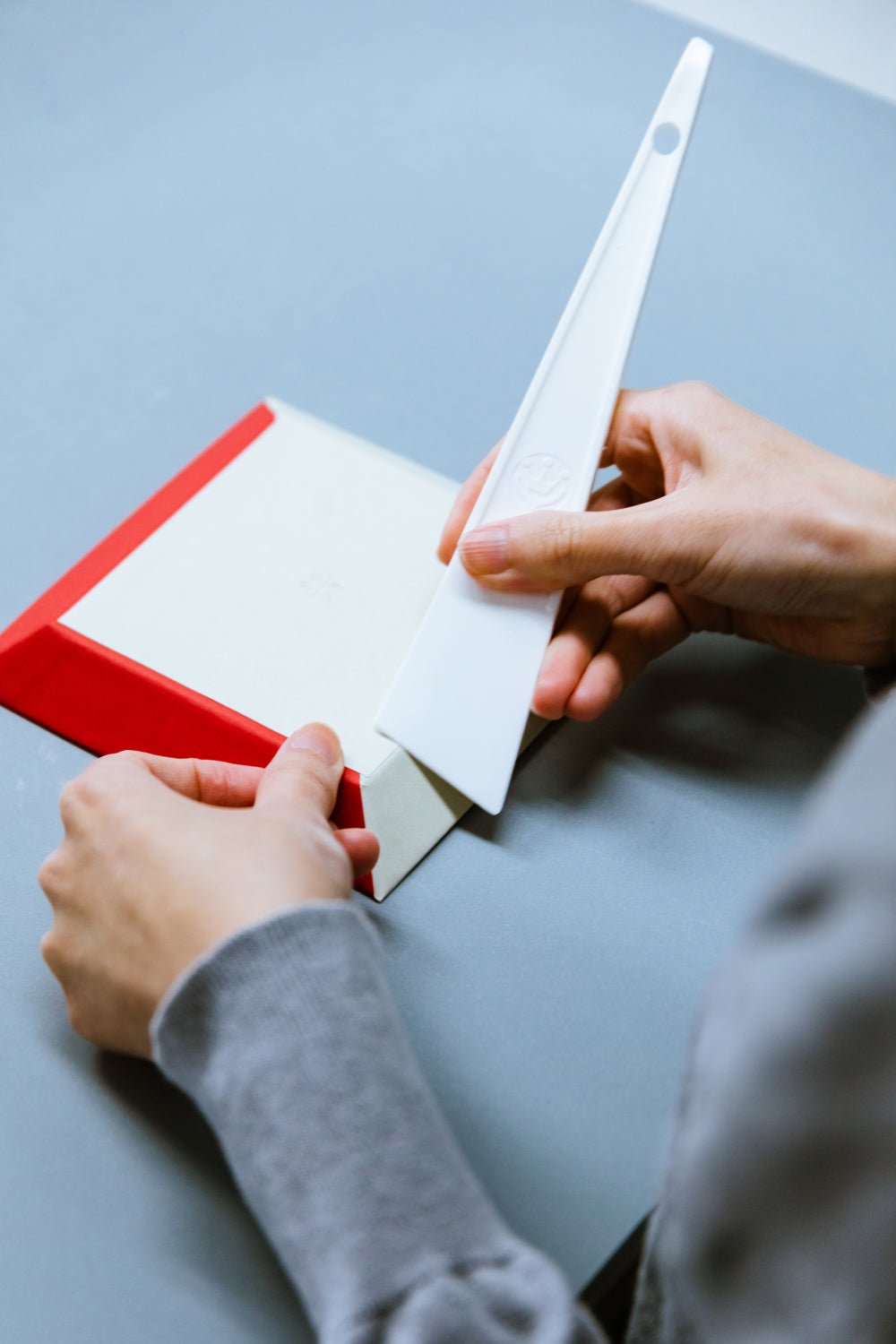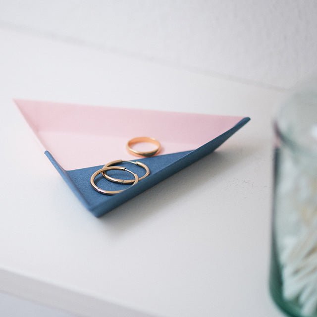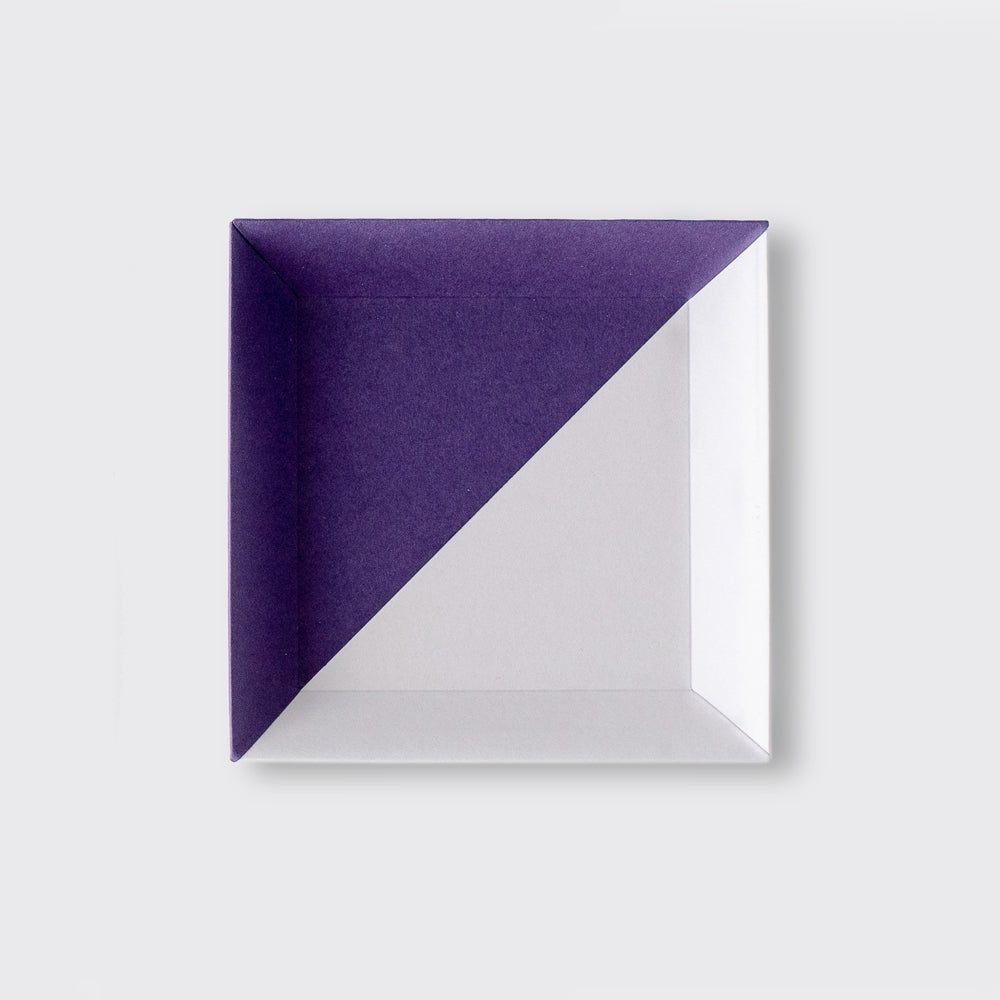 A tray made of two pieces of beautiful colored paper pasted together in a compositional manner.