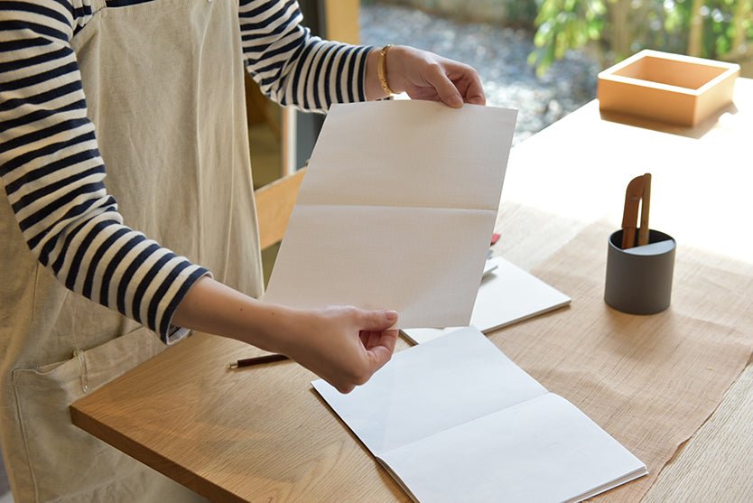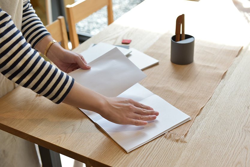 Taisei Shiki Seisakusho's representative product ``PAD NOTE'' series allows you to easily peel off a piece of paper like a memo pad. By adjusting the mixture and amount of glue, we are able to improve the opening of the notebook. When using it as a notebook, it will never fall off, but you can use a piece of clean paper like a memo pad. It can be peeled off easily with a little force.